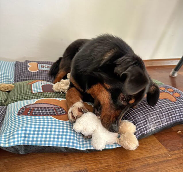 Peggy wirkt stets aufgeweckt und interessiert, scheint sich vor nichts zu fürchten und lässt sich problemlos von allen streicheln und mit Leckerlies verwöhnen :) wir haben auch schon ein paar längere Spaziergänge unternommen! Heute waren wir beim Fressnapf und sie hat sich einen zuckersüßen Teddy ausgesucht. Auch ihr Spieltrieb wird zusehends stärker.