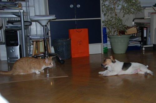 weil Bilder bekanntlich mehr sagen als tausend Worte, schicke ich Ihnen hier ein paar Schnappschüsse von Penny in ihrem neuen Zuhause. Unnötig zu sagen, dass sie alle Familienmitglieder um den Finger wickelt, inklusive Katze, die gern mit ihr Fangen spielt...
