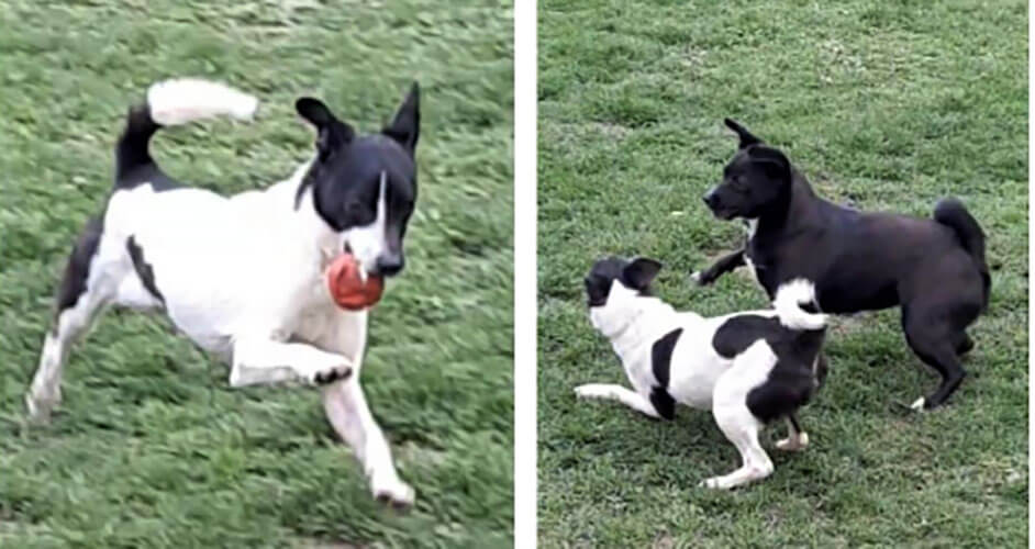 Er tobt herum mit seiner Schwester Chili, spielt, rauft mit ihr um Spielzeuge und freut sich seines Lebens.