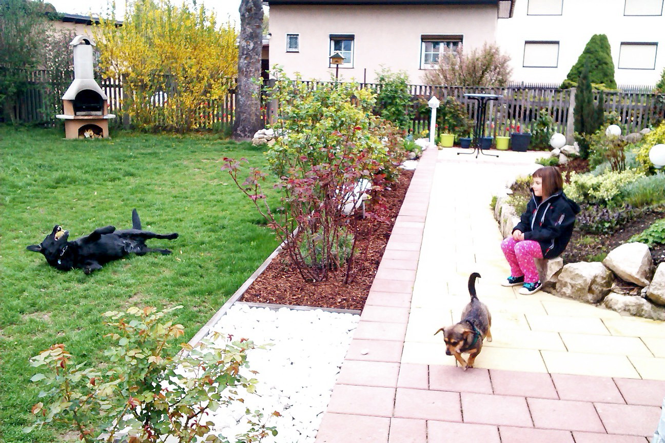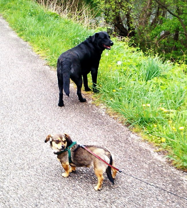 wir sind jetzt mal mit Perla glücklich und zufrieden am Sofa angelangt. Anbei die ersten Bilder von uns, die Zusammenführung mit dem ersten Nachbarshund verlief problemlos und eine Katze liegt auch schon neben Perla am Sofa ...