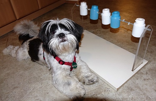 Aber trotz allem haben sie mit mir nicht geschimpft und mich noch mehr lieb gehabt. Jetzt geht es mir sehr gut, ich darf im Schlafzimmer schlafen, habe sooviel Spielzeug und mein Herrl hat mir sogar einen Futterautomaten gebaut. (Hier ist das Video auf Youtube: https://www.youtube.com/watch?v=ThHmORy5hhM&feature=youtu.be) Ich esse jetzt normal, ein sehr gutes Trockenfutter und bekomme auch Leckerli.