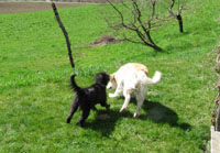 Gestern am Nachmittag hatten wir Besuch von Freunden, die eine 10jährige Hündin haben und mit ihr hat sie sich sofort angefreundet und super gespielt. In der Nacht schläft sich ganz brav im Erdgeschoß (wir im ersten Stock) und hat noch nie gewinselt, gebellt oder sich sonst irgendwie bemerkbar gemacht.