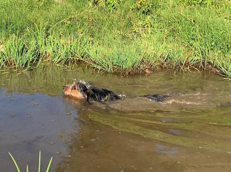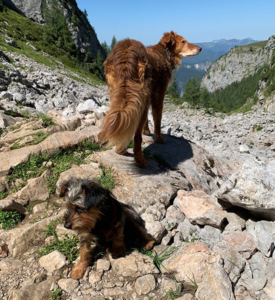 Er macht uns viel Freude, ist in der Hundeschule und auch sonst gelehrig, hat eine feine Nase, sodass wir bereits mit Mantrailing begonnen haben.