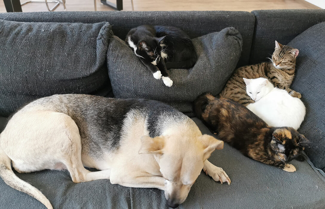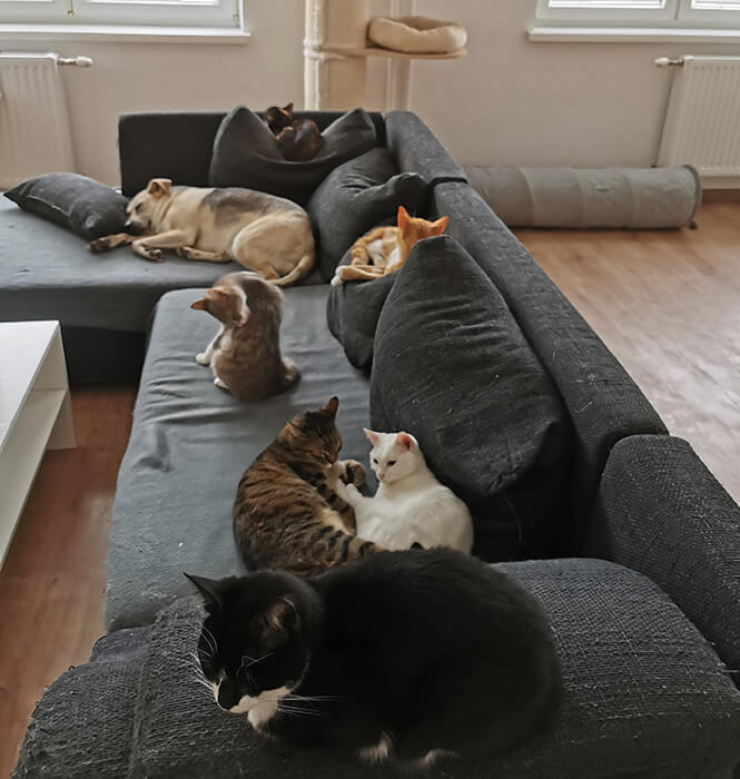 Sie ist so lieb mit den Miezen, aber auch manchmal bei einer demenzkranken Dame in der Nachbarschaft und einem einsamen Nachbarn direkt im Haus eine Art Therapiehund.