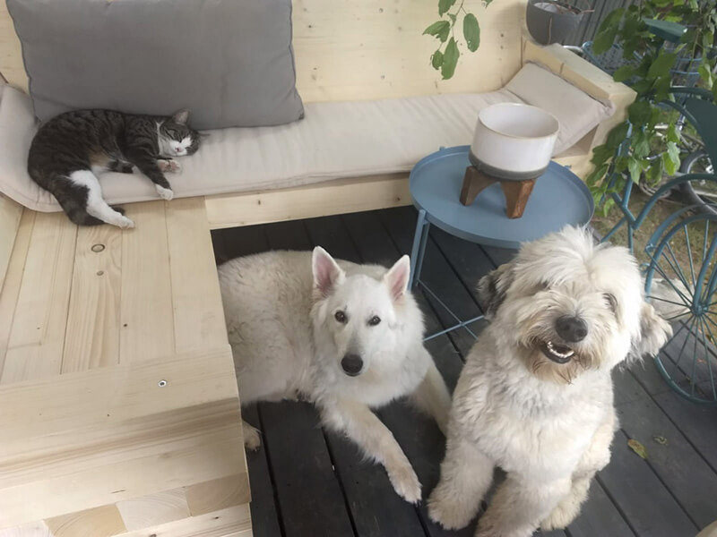 Ray geht es sehr gut und das Wichtigste: er hat jede Menge Spaß mit Aika, wenn er mit Aika über die Felder rauscht und zur Abkühlung ins Wasser kann oder mit dem Schlauch abgespritzt wird.