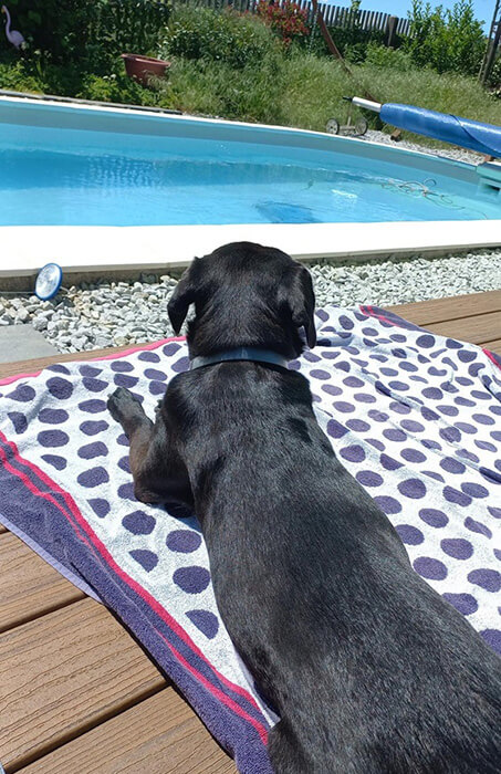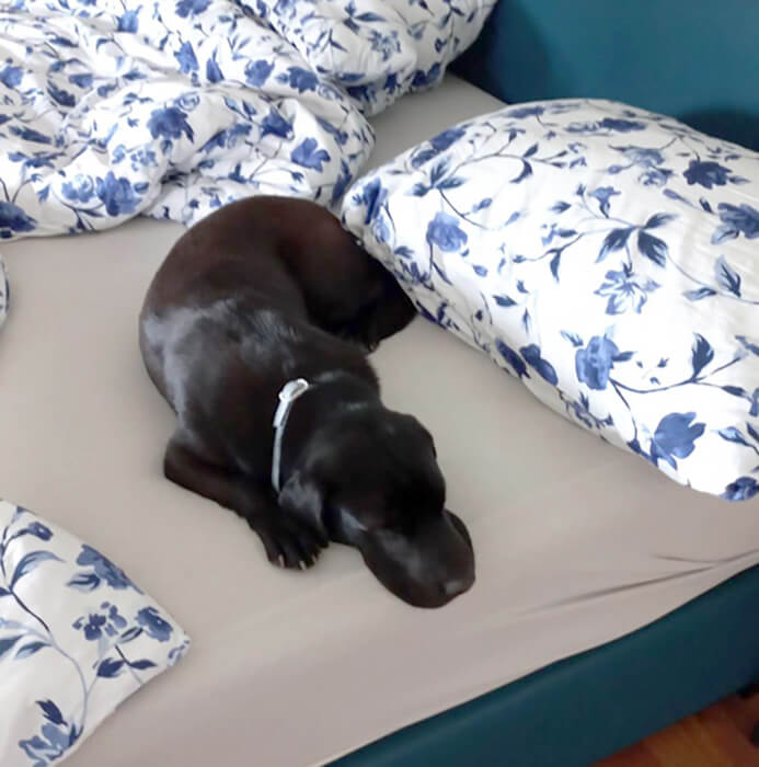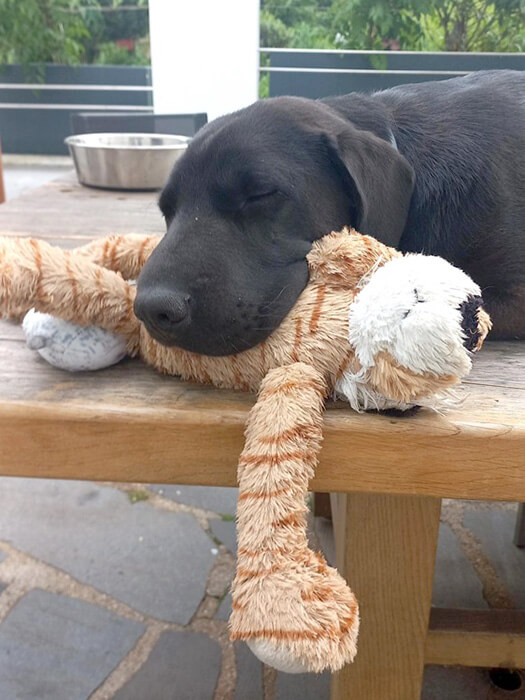 Bei meinem Mann im Unternehmen ist sie DIE Feelgood-Managerin, bei uns daheim der Star. Ihre Lieblingsbeschäftigungen sind: bei uns im Wald spazieren, Hundefreunde treffen, mit dem Auto fahren, chillen in der Sonne, auf der Couch und im Bett.