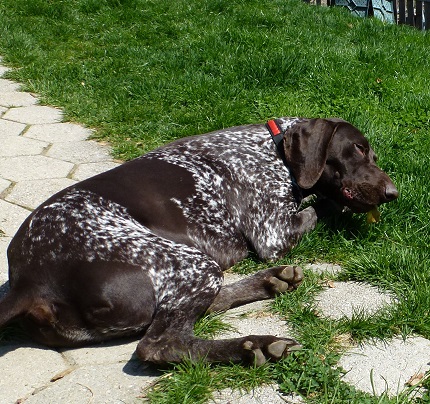 Es macht uns allen sehr viel Spass zu sehen wie neugierig und aufregend er alles findet. Im Garten steht ein altes Sofa,das war früher das Sofa von Mexx, seinem Vorgänger, er hat sich gleich genauso darauf in die Sonne gelegt wie Mexx früher. Das war ein sehr rührender Moment für uns.