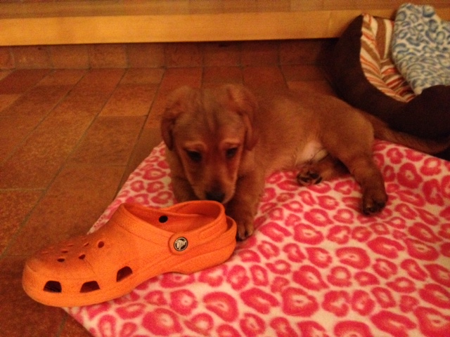 Richy ist urgewachsen, zwar nicht in die Höhe dafür in die Länge. Bei den 2 Fotos sehen Sie den Unterschied, mein Hausschuh!!!!! Wie man auf diesem Foto erkennt fehlt dem Schuh jetzt der Riemen, da kommt der Charmebolzen dann aber immer mit seinem "Ich war´s nicht" Gesichtsausdruck und bei diesem Blick kann man dann gar nicht mehr böse sein, oder??? Richy hat sich sehr gut eingelebt, er ist ein unermüdlicher Wirbelwind, stiehlt alles was nicht niet- und nagelfest ist. Man braucht aber nicht lange suchen, er versteckt alles in seinem Bettchen. Mit seinem "Bruder" versteht sich Richy auch sehr gut, die 2 toben viel im Garten oder spielen mit ihren Stofftieren.