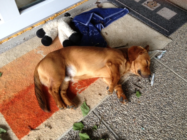 Dieses Foto ist von gestern, nachdem er sich einen Riesenast vom  Garten geholt und auf der Terrasse zerlegt hat war er dann doch ein wenig müde ;-)