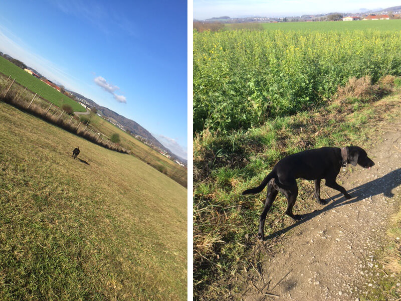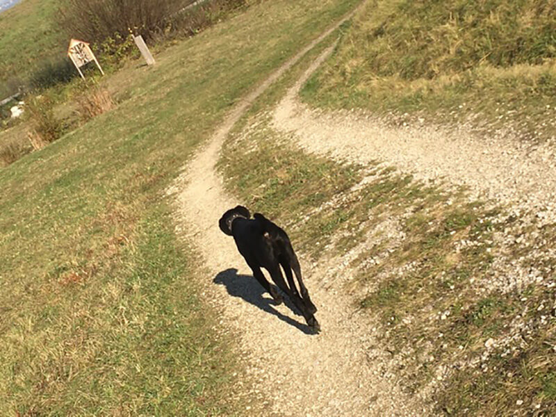 Er ist immer noch total gut drauf, schwimmen, laufen, Stundenlange Spaziergänge usw...
