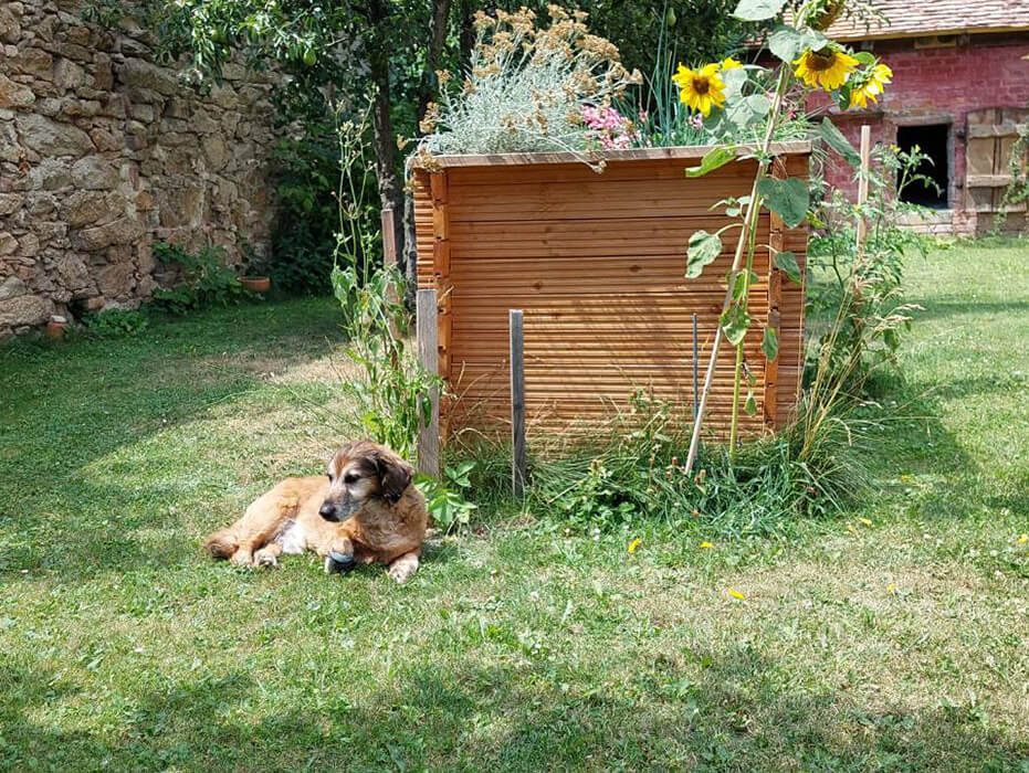 Ronja und Smarty haben jetzt einen großen Garten zur Verfügung, trotzdem hängen sie am liebsten mit uns auf der Terrasse herum :)), sind ja beide auch schon etwas älter geworden.