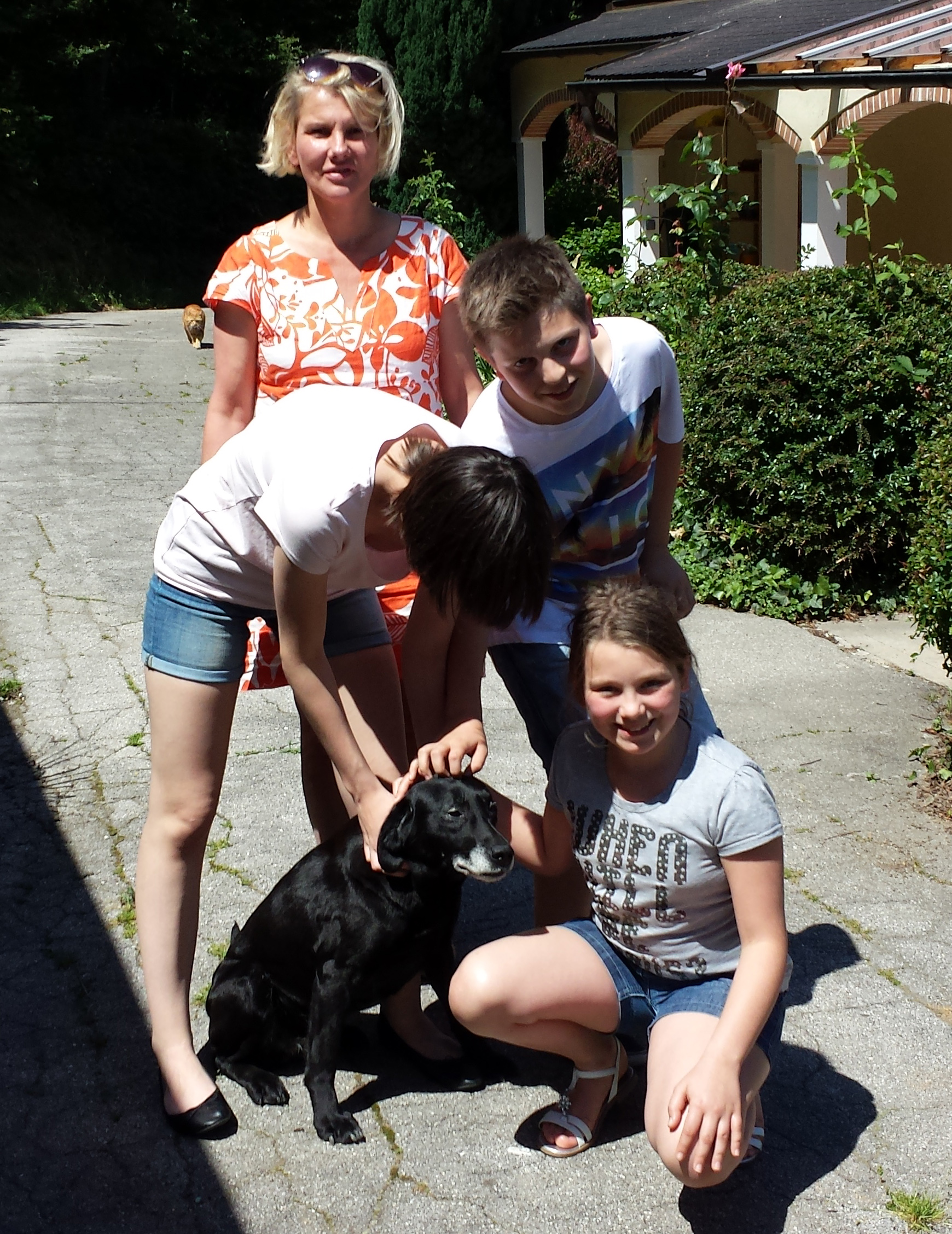 anbei ein Foto von Selina mit einem teil der Familie! Eigentlich wollten wir auch unseren anderen Hund mit auf das Foto bekommen, aber leider es ist nicht geglückt. Selina ist ein wirklich süßer und lieber Hund. Sie versteht sich mit allen, ob Hund oder Katz! Unsere Kinder haben sie alle schon Fest ins herz geschlossen!