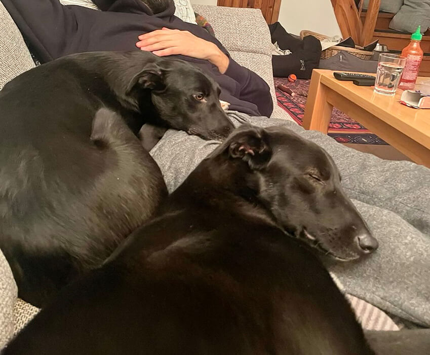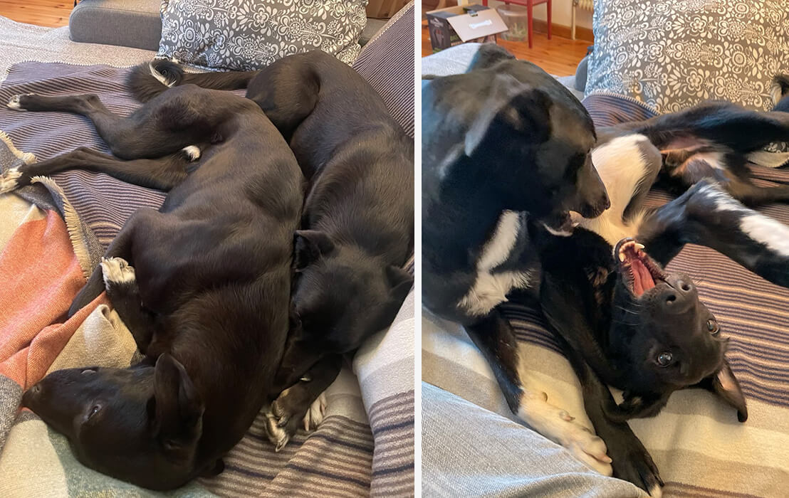 Alles in allem läuft es immer noch super und wir haben viele schöne und lustige Momente mit ihnen. Sie klauen gerne alles mögliche was herumliegt, vor allem Schuhe und Hauspatschen. Diese werden aber nie zerstört sondern landen im Hundekorb, genauso wie alle Bälle und Stöckchen die sie bekommen. Obwohl wir derzeit das Pech haben, dass seit Montag direkt vor Haus und Garten eine laute Baustelle ist, habe sie sich sogar schon an die Geräusche gewöhnt und gehen mittlerweile ohne Bedenken in den Garten und schlafen im Wohnzimmer obwohl es momentan wirklich sehr laut ist. Einfach Helden!