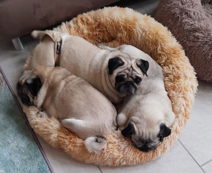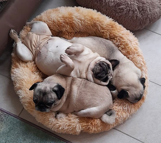 Sissy, in der Mitte, versteht sich super mit ihren neuen Freundinnen. Obwohl viele Bettchen zur Verfügung stehen ...... gekuschelt wird nur gemeinsam.