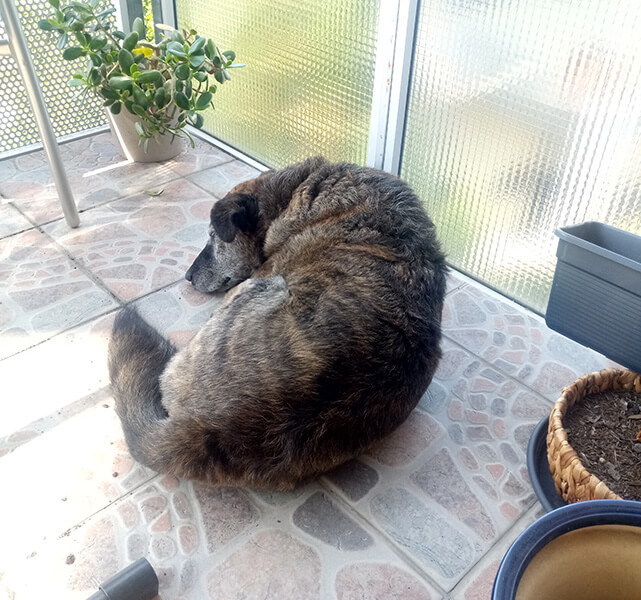 Von meinem neuen Balkon muss ich unbedingt auch noch erzählen. Da liegt man super geschützt, aber hat einen super Überblick über die Umgebung. Ich kann zwar nicht so viel sehen durch das Gitter, aber meine Ohren und meine Nase verraten sowieso alles. Und da kann ich mir so richtig schön die Sonne auf den Bauch scheinen lassen. Wenn es nicht zu heiß ist, finde ich das ja super. Die Hitze ist dafür nicht so meins, da fühle ich mich immer ein bisschen matschig, anscheinend liegt das an meinem Herzen. Das soll demnächst mal angeschaut werden. Ich weiß zwar nicht wie das funktionieren soll, das ist ja schließlich in mir drin, aber anscheinend geht das irgendwie von außen. Wir üben auf jeden Fall schon fleißig, dass meine Mama mir das ganze Fell am Brustkorb wegmachen kann, das ist anscheinend notwendig für dieses Kameraähnliche teil, das mein Herz zeigen soll. Ich bin ja gespannt wie das wird… Und so lange lege ich mich einfach auf meine Kühlmatte, das geht schließlich auch. Und jetzt kommt ja auch zum Glück der Herbst.