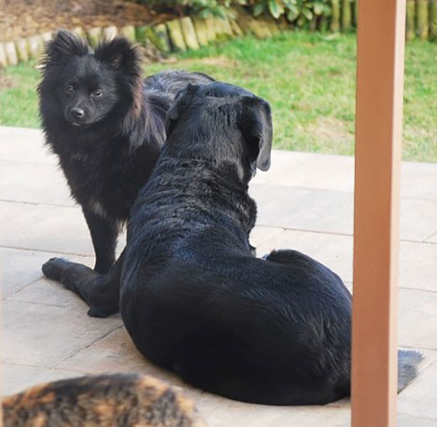 Die "graue" Maus, unsere Micky Maus, ist die Kleine, die wir vor 6 Jahren von Euch geholt haben. Sie war ein kleines schwarzes "Häufchen" mit glatten Haaren, und entwickelte sich dann zu einer süßen "grauen Maus" mit Locken. Sie ist bei den Hunden der absolute Rudelführer und verteidigt Luka der Große, und Obelix total...….