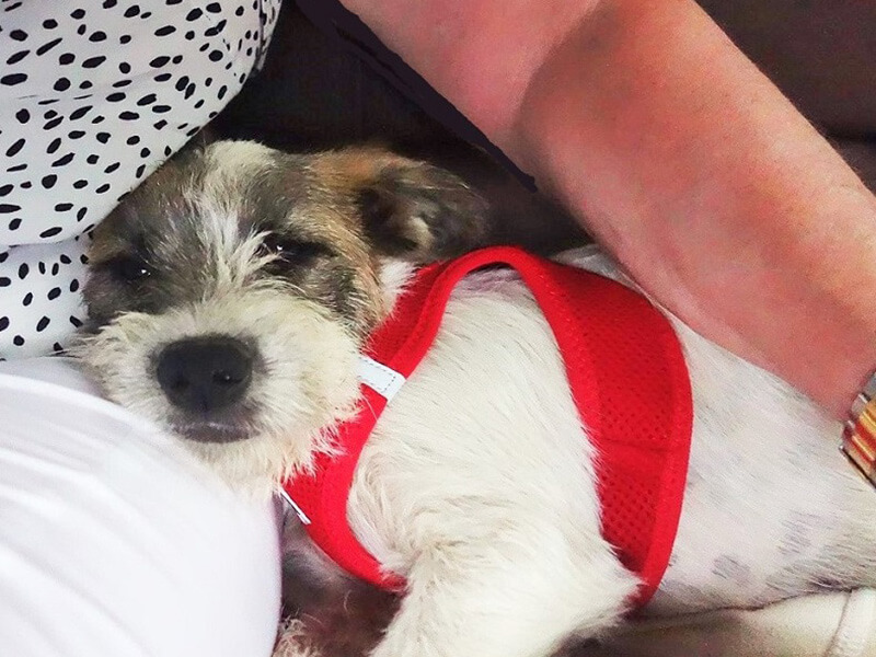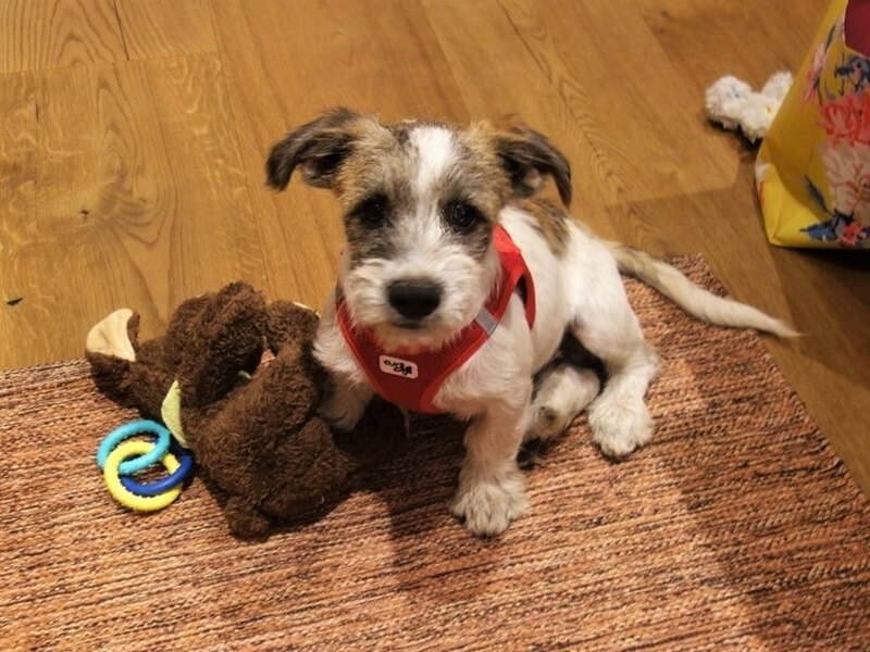 Stanley geht es ausgezeichnet! Nach einer entspannten Rückfahrt von Ungarn nach Kitzbühel (er verbrachte die meiste Zeit auf meinem Schoß, oder hatte sein Köpfchen in meinem Arm, er war sehr ruhig und gelassen beim Autofahren), hat sich der Kleine in den 3 Tagen schon gut eingewöhnt und macht all' den "Welpen-Unsinn", den Welpen halt' so machen (nichts ist sicher, alles wird angeknabbert .....)!