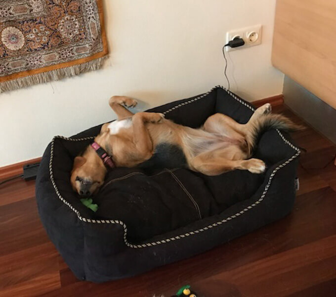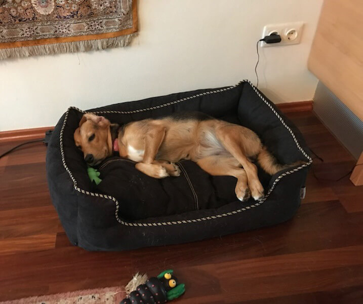 Stella auf Kurzurlaub in Wien - viele Parks, Hunde und natürlich auch hier die gewohnten Luxuskörbchen.