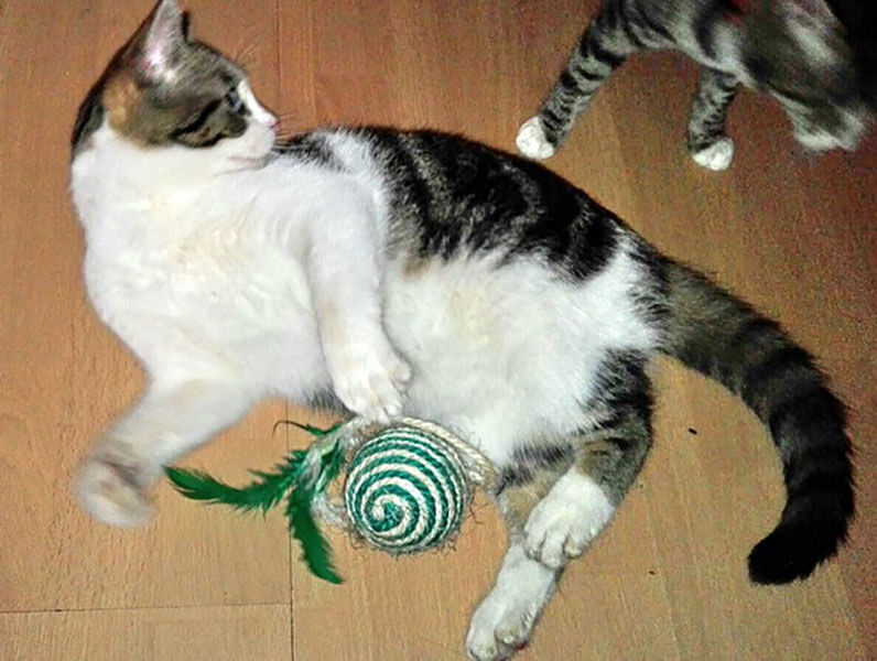 Und Spiky ist bei den anderen Katzen und stellt immer einmal wieder was auf den Kopf vor lauter Übermut.