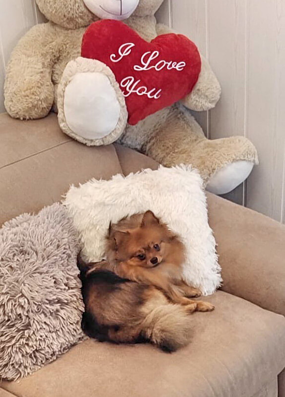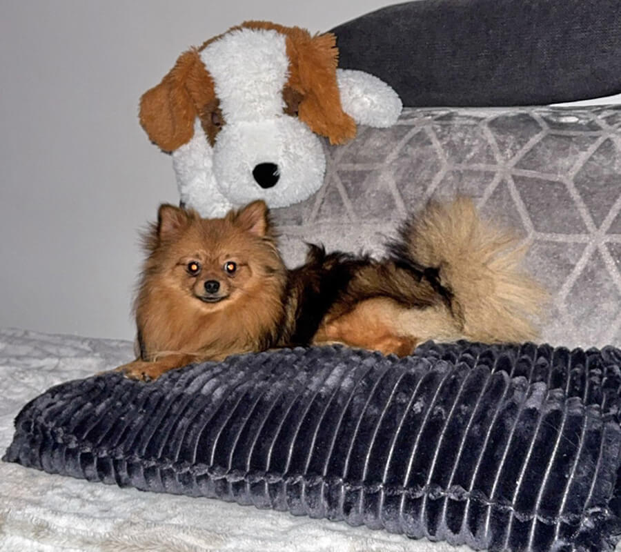 Er hat sich wunderbar eingelebt, wird von Tag zu Tag sicherer und blüht immer mehr auf. Mit unseren Katzen und unserer Hündin Malou ist er bereits ein eingespieltes Team, und auch die Hunde meiner Schwester durfte Teddy schon kennenlernen – alles verlief ruhig und harmonisch.