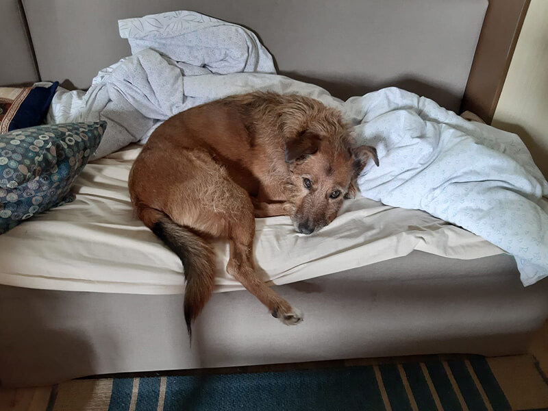 Er ist sehr brav, bellt noch immer nicht und schläft am liebsten im Bett! Angst vor anderen Hunden hat er auch noch immer, aber besser Angst als möglicherweise ein Raufbold!