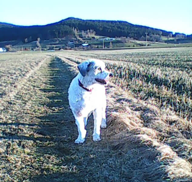 Er hat es uns sehr leicht gemacht. Er liebt Kinder - ist aber nie aufdringlich, ist ruhig im Haus, begleitet mich mit dem Pferd und genießt sein Leben. Eine Leine braucht er nur dort, wo sie gesetzlich vorgeschrieben ist.