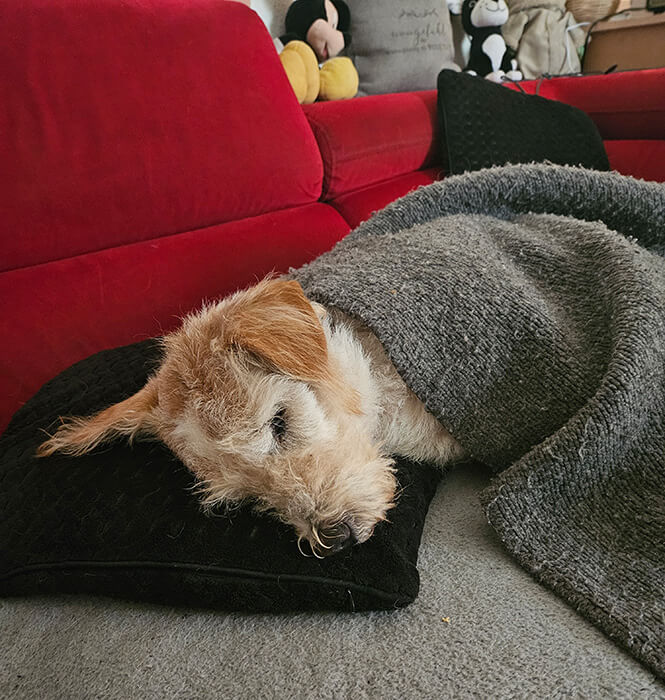 Er hat sich wirklich fast problemlos angepasst, geht super mit an der Leine und auch Autofahren ist kein Problem. Vor 2 Wochen war er beim Tierarzt für eine Zahnbehandlung und auch da war er sehr brav.