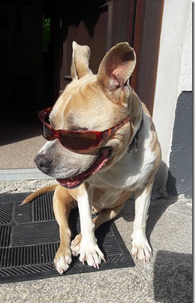 Mittlerweile genügt ihr ein 20 min Spaziergang, nur so rumschnüffeln oder strolcht zeitweilig in unserem großen Garten herum. Die restliche Zeit döst oder schläft sie im Haus. Da sie alles und davon viel frisst, hat sie schon mal das Obst unter den Bäumen entdeckt...Nun wird bei uns oft eingesammelt und Trivia im Garten mit Argusaugen beobachtet.