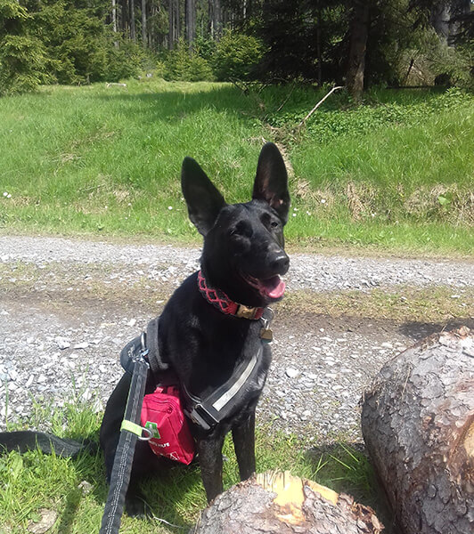 Ursa ist absolut traumhaft, liebevoll,verschmust,.... Wir nehmen sie auch zum Bogenschießen mit ,was sie sehr lieb...sie liebt auch das Wasser,Autofahren,....