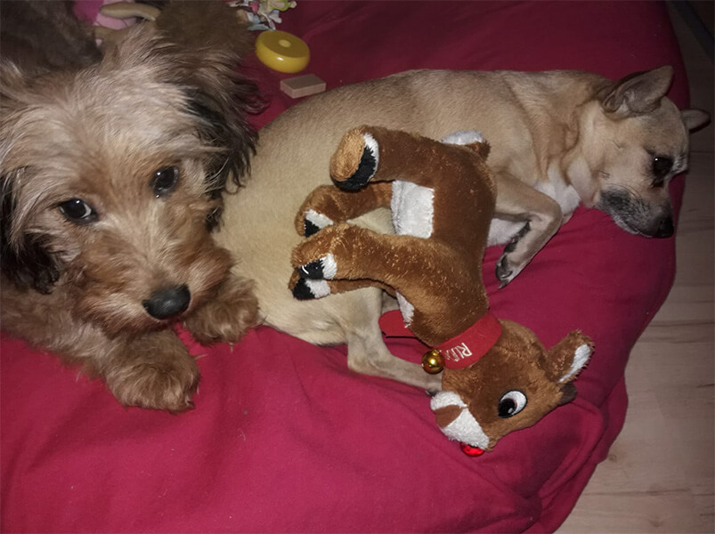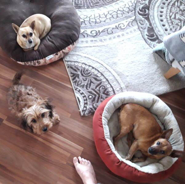 Nach einem lustigen Spaziergang schlafen sie schon gemeinsam im Körbchen.