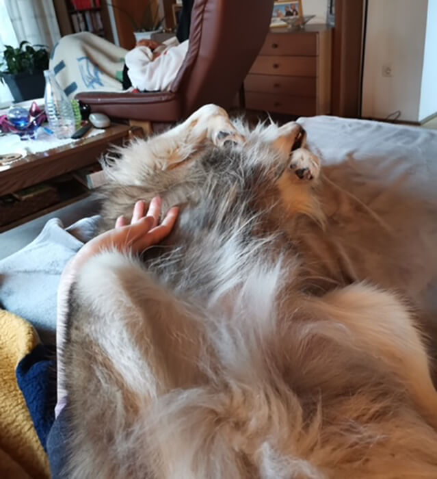 Den Sommer haben wir mit vielen Spaziergängen im Wald einschließlich Baden im Bach verbracht. Hitze ist nicht so sein Ding, beim Kuscheln wirds ihm dann schnell zu warm. Kein Wunder mit dem langen, dichten Fell 😅 Kaum ist das Wetter kühler, schmiegt er sich aber wieder ganz dicht an uns ran. 🥰