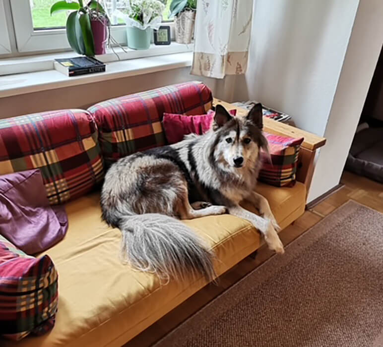 Wir haben übrigens einen Gen Test machen lassen. Nur so aus Neugier. Ein Elternteil ist demnach bis zu den Urgroßeltern ein sibirischer Husky, der andere Elternteil eine bunte Mischung aus Husky, holländischem Schäferhund, jugoslawischem Hirtenhund, englischem Hütehund... Von allem nur das Beste natürlich 😉 Meiner Meinung nach müsste Valik auch Seehund in seiner Ahnenreihe haben. Er liebt Wasser. Ob von unten oder oben, hauptsache kühl und nass 😂
