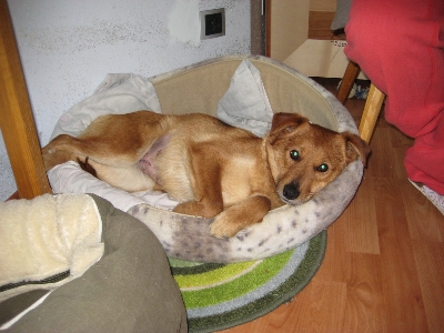 Mit heutigen Datum ist sie Nahtfrei und ihre Wunde ist sehr schön verheilt, sie hat eine schwerere Ohrenentzündung im rechten Ohr welche laut Arzt schon chronisch sein kann, ansonsten ist sie absolut gesund und quick lebendig. Gestern haben wir auch schon die Registrierungskarte von "Animaldata" bekommen und seit vorigen Mittwoch ist sie eine ganze "Müller" laut Gemeinde.