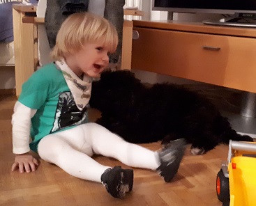 Mit den Alltagsgeräuschen In der Wohnung bin ich vertraut, nur im Freien bin ich noch ängstlich. Es ist Ehrensache, dass ich die Nacht immer bei Frauchen und meinem Kumpel Daniel auf der Wohnzimmercouch verbringe. Daniel ist sehr lieb - er lässt mich immer mitspielen - seinen bunten Bagger habe ich zum Fressen gern und auch seine Crocs leihe ich mir aus. Dafür setze ich beim Spazierengehen meine Duftmarke damit wir wieder nach Hause finden.