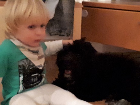 Eine Sache bereitet meinem Frauchen ein bisschen, aber wirklich nur ein ganz kleines bisschen Kummer - meine Abneigung Männern gegenüber - habe vor denen Angst (Ausnahme der Papa meines Frauchens). Beispiel: Es kam der Patenonkel von meinem Kumpel zu Besuch da fing ich an zu knurren und als er sich bewegte schnappte ich zu - wollte mal das „Gericht“ Handfest probieren. Bei dem Kindsvater (der kommt 2x die Woche Daniel besuchen) knurre ich auch und bin wachsam – ich will meine kleine Familie beschützen, ist ja natürlich. Wenn wir die Großeltern (deren Yorki übrigens finde ich sympathisch) meines Frauchens besuchen knurre und schnappe ich auch nach Opa. Der sieht das sportlich und meint wenn ich sehe dass er mir nichts tut, knurre und schnappe ich nicht mehr nach ihm.