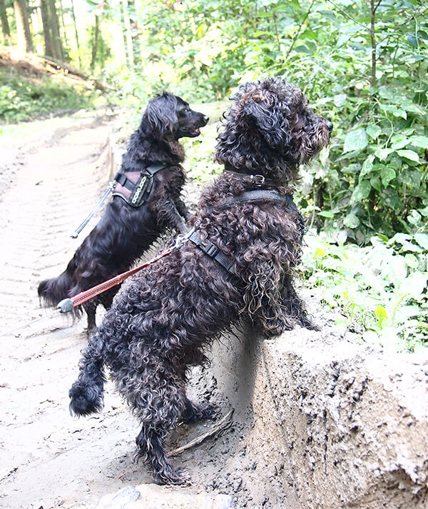 Den beiden Hundsis geht´s wirklich gut. Sie mögen sich jetzt auch sehr; nicht so wie zu Beginn, als Tekla den Wuschi ständig gepiesackt hat. Tekla ist nun eher die ruhigere von beiden und seit ihrer Kastration auch etwas rundlicher. Dafür ist Wuschi umso lebhafter geworden, er ist ständig zu Späßen aufgelegt; sei es jetzt das Verstecken von Schuhen, das Herumtragen von Spielsachen, das um-die-Wette-Bellen mit den Nachbarshunden oder auch einfach nur das lustig Herumspringen und andere zum Spielen Auffordern. Ich hoffe sie haben jetzt keinen falschen Eindruck von meinem Liebling, er kann auch längere Zeit still zu meinen Füßen liegen, er muss aber schon durch Beschäftigung ausgelastet werden. Dafür lernt er auch schneller als Tekla.