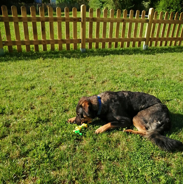 Yumi ist ein kleiner Wirbelwind. Sie spielt wie verrückt und hat schon viele neue Hunde- und Menschenfreunde. Das fehlende Bein fällt keinem auf.