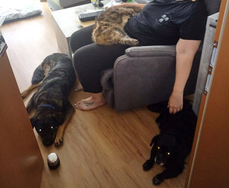 Danach liebt es, sie mit allen Mitbewohnern ausgiebig zu kuscheln.