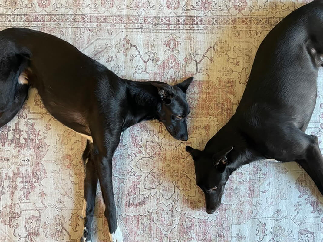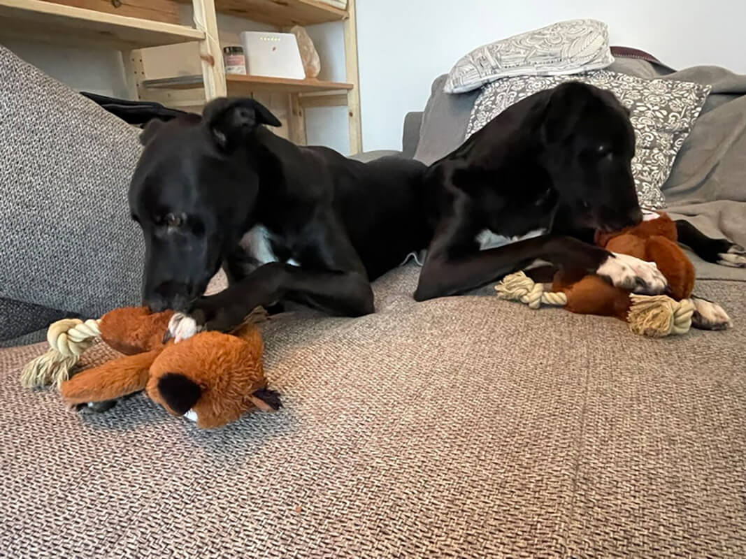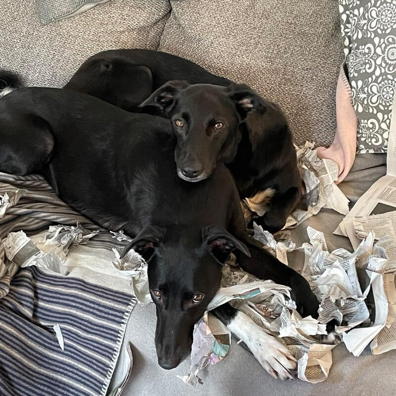 Zuhause sind sie total brav und ruhig, das alleine bleiben klappt zum Glück problemlos und Besuch wird mittlerweile auch freudig empfangen. Nur die vielen Nachbarskatzen sorgen manchmal für Gebell und Unruhe, aber wer will schon perfekte Hunde :D