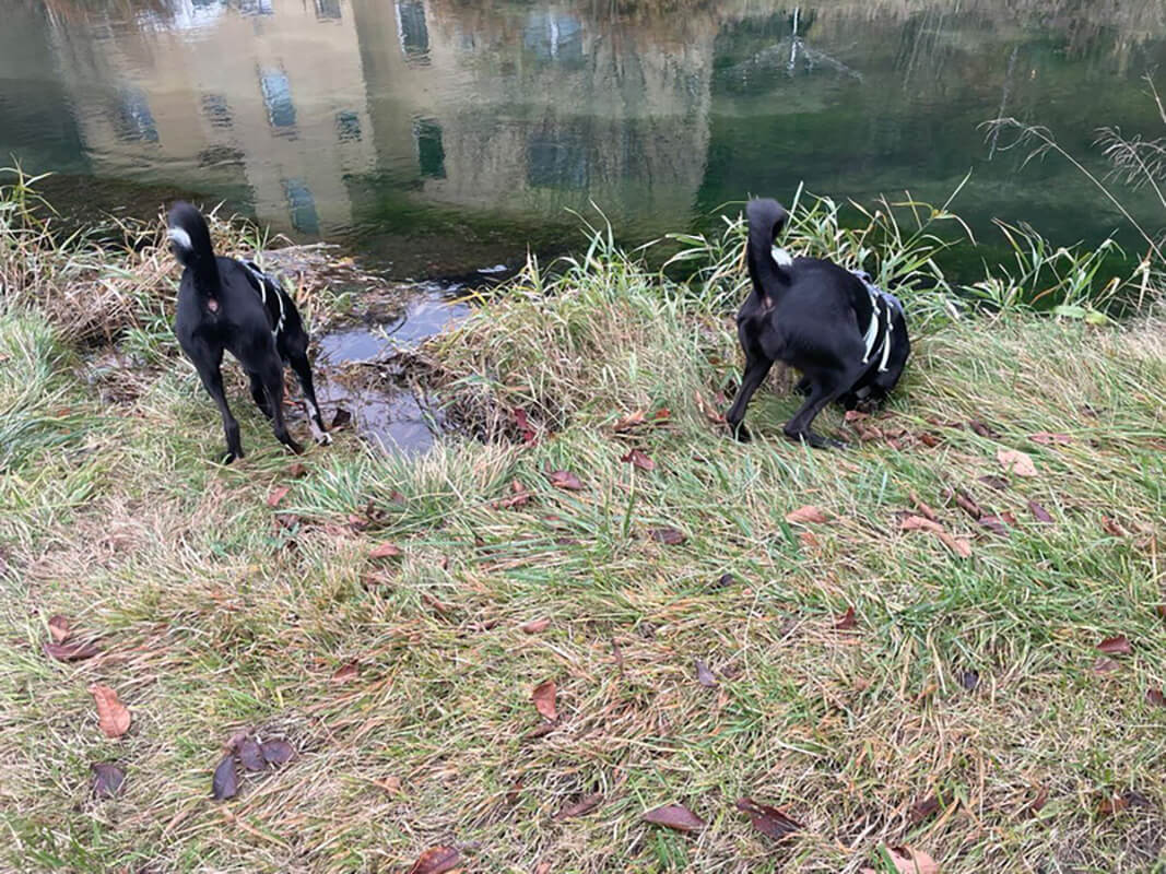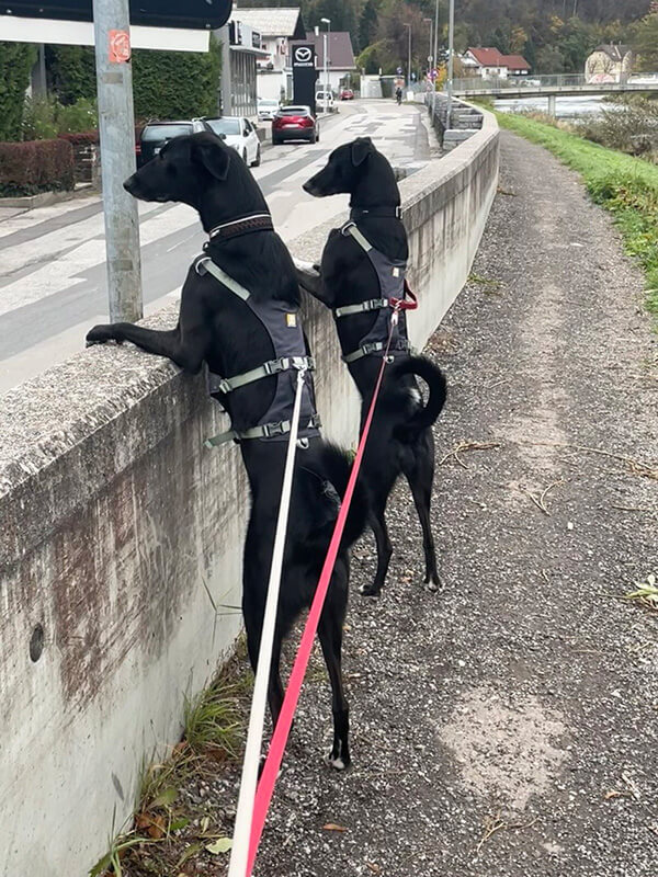 Zugegeben, die gleichzeitige Erziehung zwei junger Hunde, besonders das Leinengehen war und ist manchmal noch sehr herausfordernd.