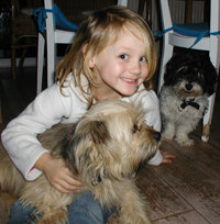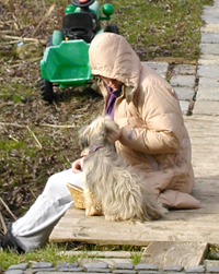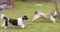 Zyna, nach anfänglicher Angst, lebte am 4. Tag so richtig auf und liebt nun besonders unsere morgendlichen Ackerspaziergänge mit Wendy, unserer anderen Hundedame, sie nagt für ihr Leben gerne die Kauknochen oder jagt mal unser Kaninchen (da greif ich natürlich ein ;-) ) , sie kuschelt abends bei mir am Sofa oder spielt mit Wendy im Garten.