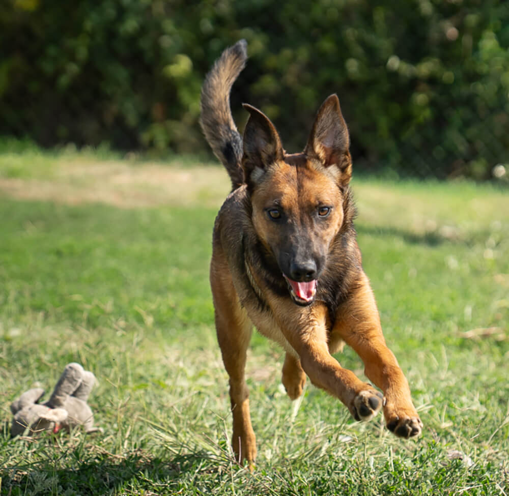 Die Hündin erinnert äußerlich an einen Malinois, ist jedoch kleiner und zarter gebaut. Die Schulterhöhe der Hündin beträgt ca. 48 cm und sie wiegt ca. 15 kg.