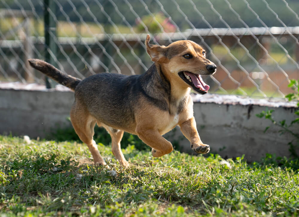 Die Schulterhöhe des Rüden beträgt ca. 28 cm und er wiegt ca. 10 kg.