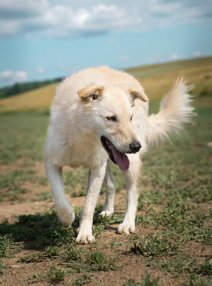 Die Schulterhöhe des Rüden beträgt ca. 55 cm und er wiegt ca. 20 kg.