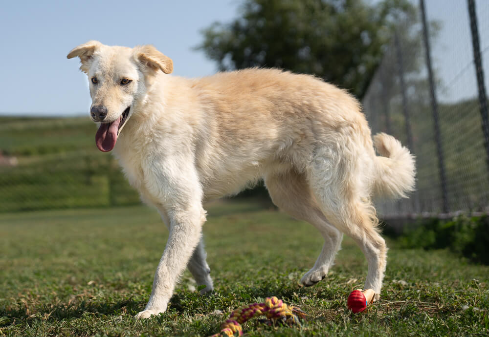 Im Gehege spielt Liam sehr gerne mit seiner Schwester Laola. Auf dem Auslaufplatz zeigt er sich verspielt und fröhlich: Er tobt ausgelassen mit anderen Hunden, läuft neugierig umher und interessiert sich aufmerksam für alles, was um ihn herum passiert. Liam verträgt sich ausgezeichnet mit allen Artgenossen, sein Verhalten gegenüber Katzen und anderen Tieren ist uns nicht bekannt.