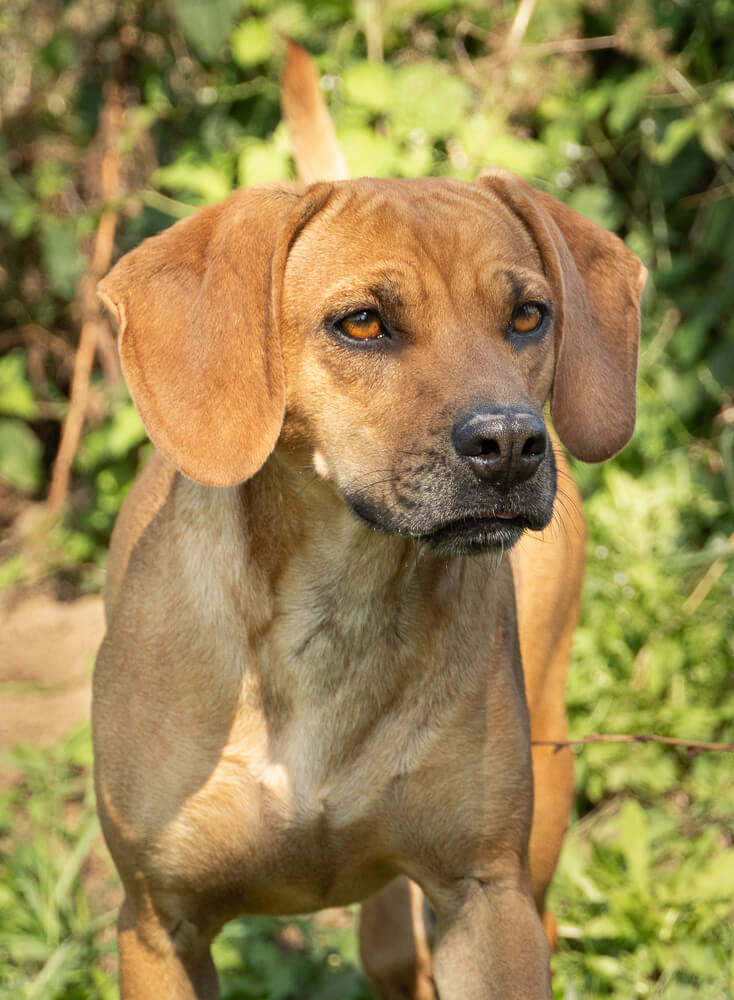 Die Schulterhöhe der Hündin beträgt 46 cm und sie wiegt ca. 17 kg.