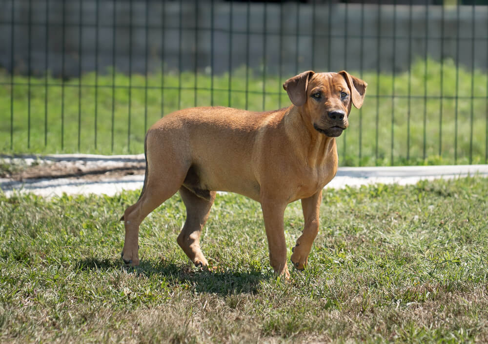 Die Schulterhöhe des Rüden beträgt ca. 48 cm und er wiegt ca. 17 kg.