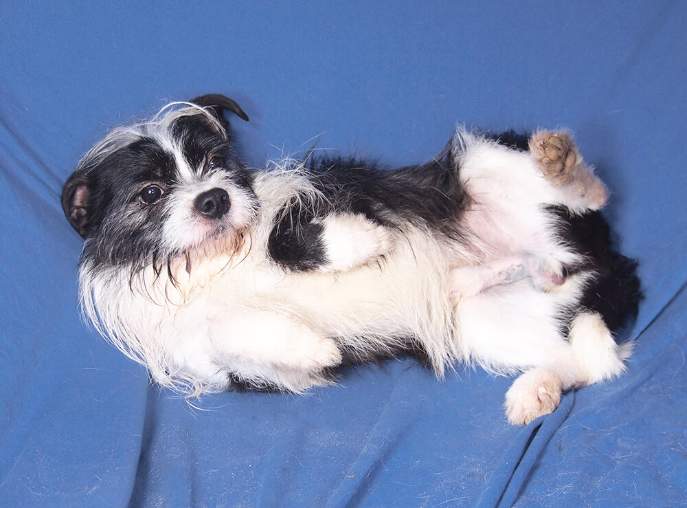 Der Rüde hat eine Schulterhöhe von 32 cm und wiegt ca. 5 kg.