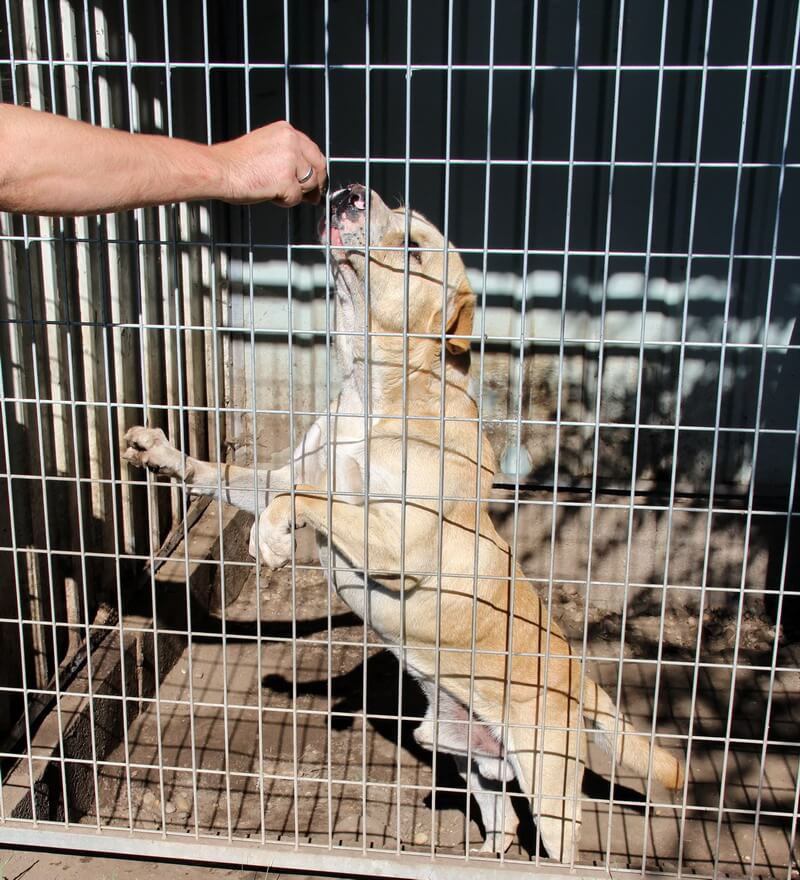 sehr freundlich und verschmust, temperamentvoll, fröhlich, anhänglich, ausgesprochen lernfreudig, als Zweithund nur zu einer HündinFreddy ist en vermutlich 2022 geborener, möglicherweise Labrador-Mischlingsrüde, der auf der Straße streunte, eingefangen und in das Tierheim unserer ungarischen Partnerorganisation gebracht wurde.