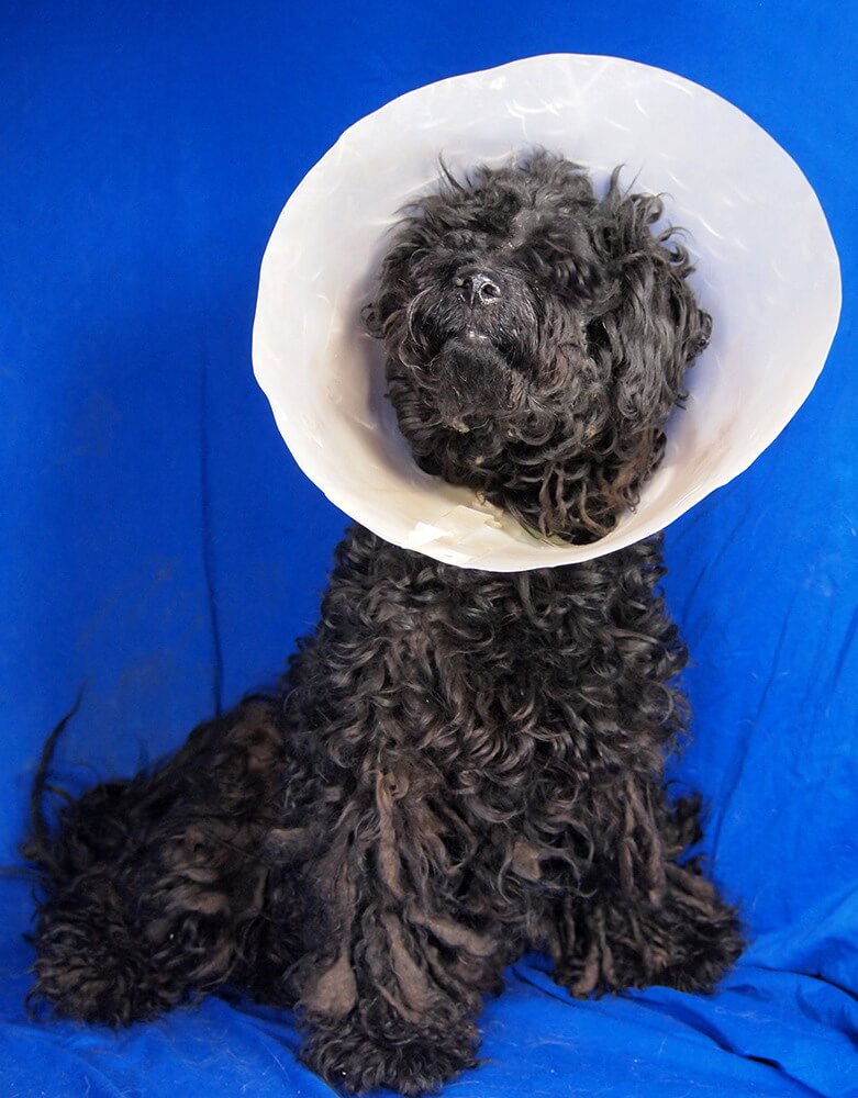 Der hübschen Hundedame musste das linke Auge aufgrund eines schmerzhaften Glaukoms (grüner Star) entfernt werden. Am rechten Auge leidet sie an einer chronischen Uveitis (Entzündung der mittleren Augenhaut). Diese Erkrankung bedarf Augentropfen und regelmäßiger Kontrollen.